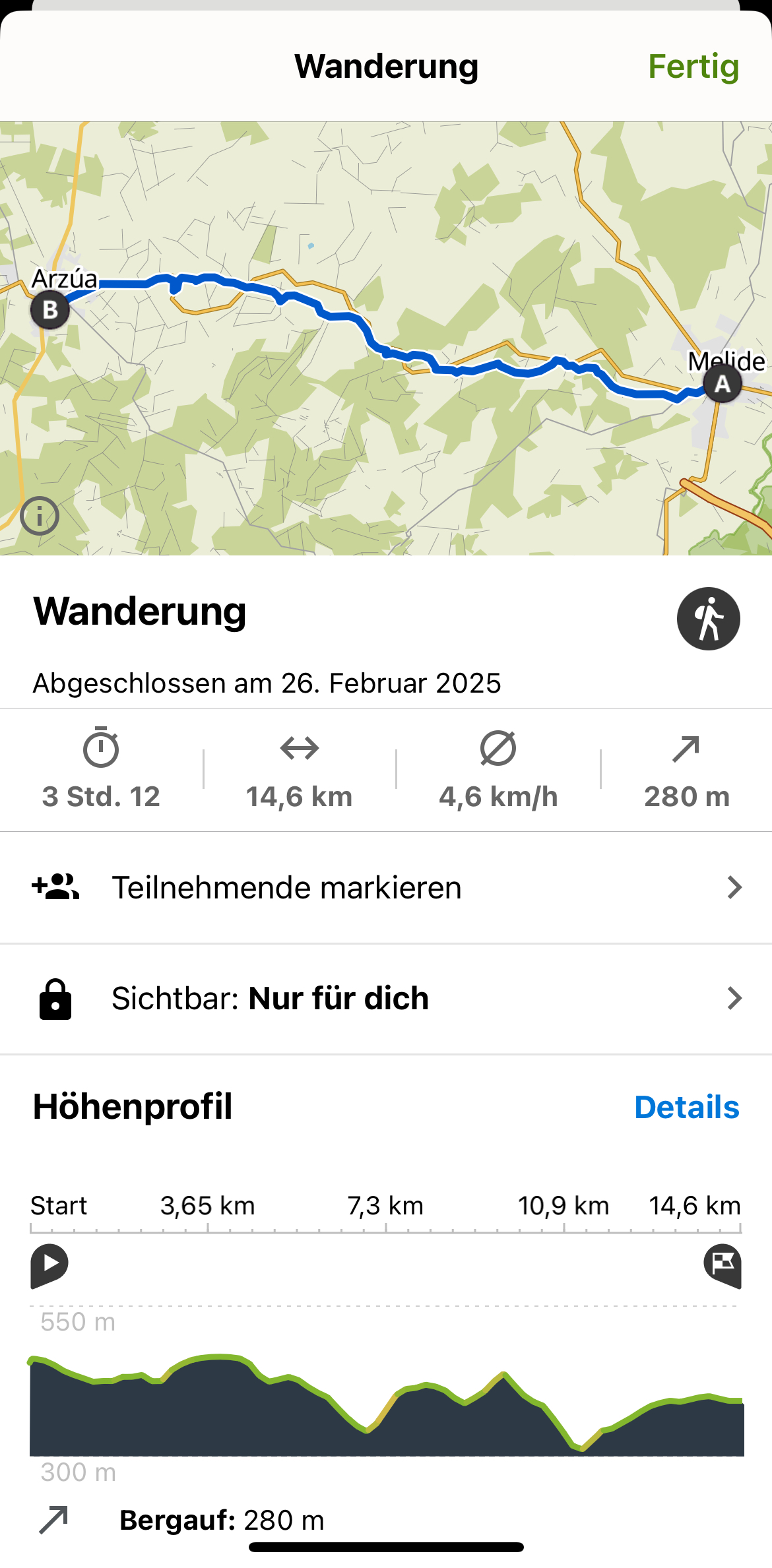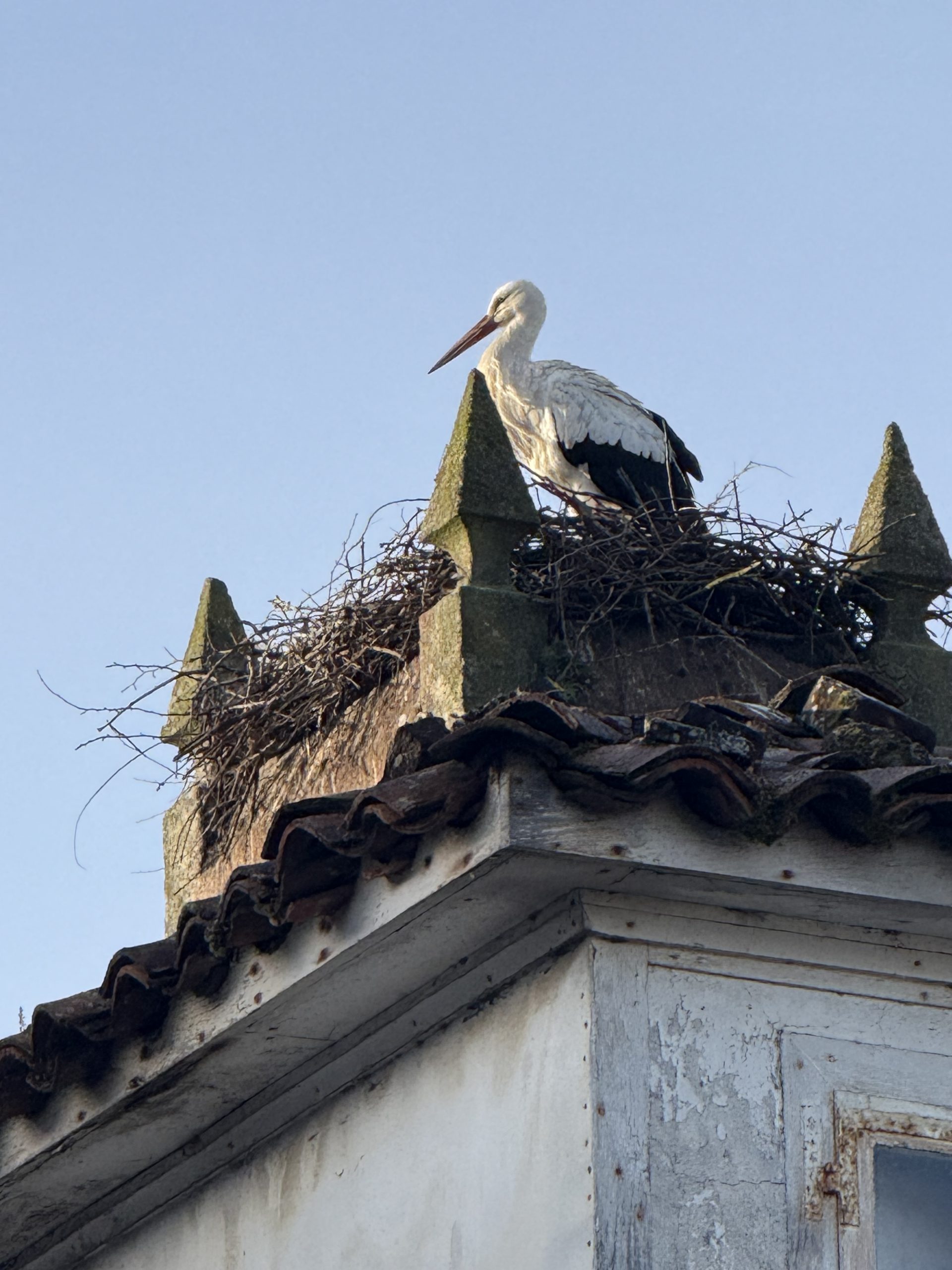 Auf den wunderschönen Wegen begleitete uns, wie jeden Morgen, das kleine Rotkehlchen, das inzwischen fast wie ein treuer Weggefährte wirkt. Unterwegs entdeckten wir einen Storch in seinem Nest, ein beeindruckender Anblick. Wenig später flog ein weiterer Storch majestätisch über uns hinweg – ein wunderbares Naturschauspiel, das den Moment besonders machte.