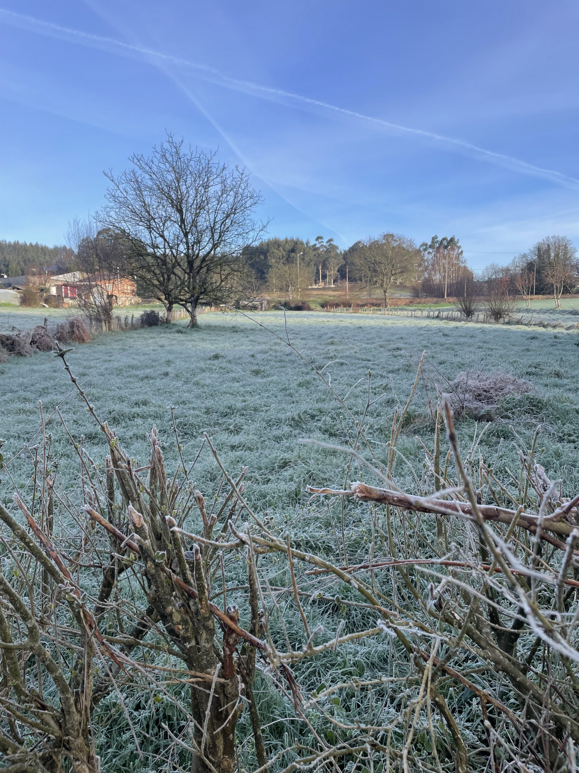 Der Morgen begrüßte uns mit klirrender Kälte – Raureif bedeckte die Wiesen und ließ die Landschaft in einem fast magischen Licht erscheinen. Dick eingepackt machten wir uns nach einem gemütlichen Frühstück auf den Weg. Trotz der kühlen Temperaturen waren wir beschwingt und voller Energie, vor allem, weil wir heute ohne die schweren Rucksäcke unterwegs waren – eine wirklich gute Entscheidung!